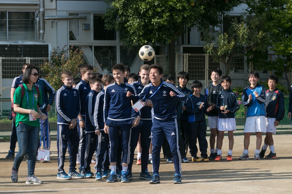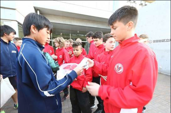 内容:海外チームが都内の中学校を訪問。歓迎セレモニー、応援フラッグの贈呈、ゲーム、校内の見学など