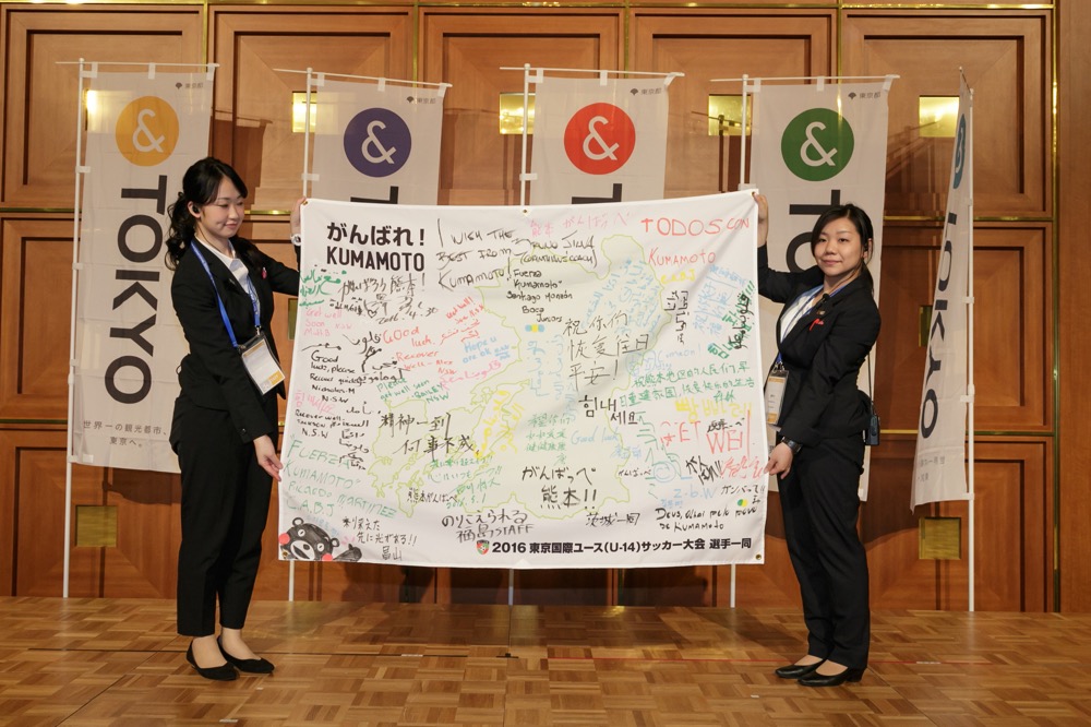 内容:岩手、宮城、福島、茨城チームへフラッグ贈呈、熊本応援フラッグ提示、各チームのPRタイムなど