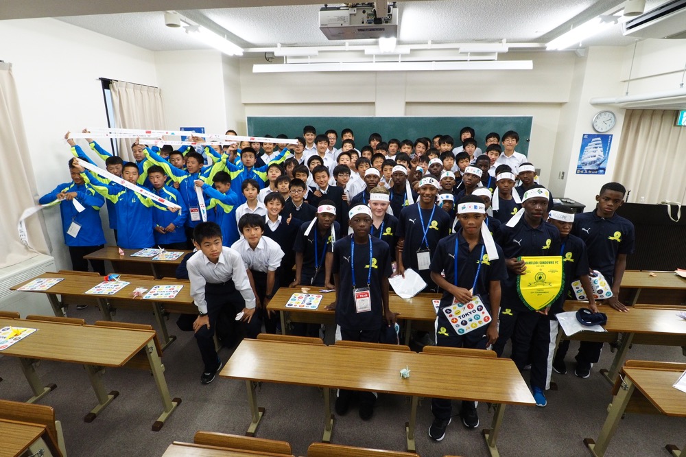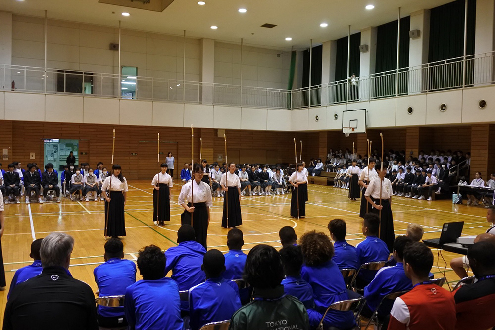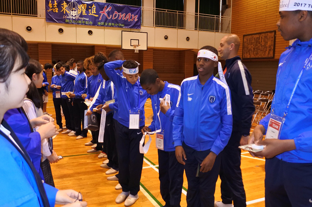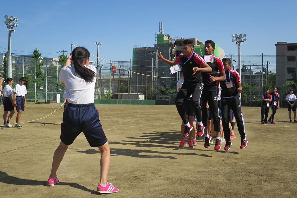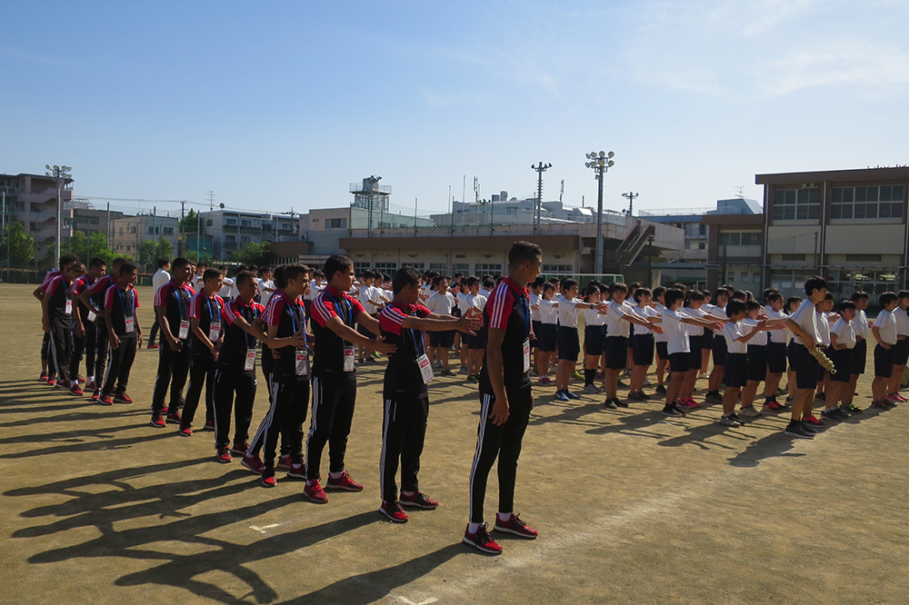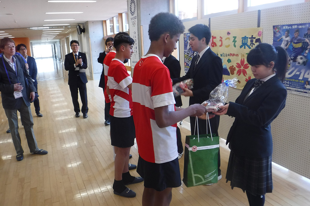 内容:海外チームが都内の中学校を訪問。歓迎セレモニー、記念品の贈呈、ゲーム、校内の見学など