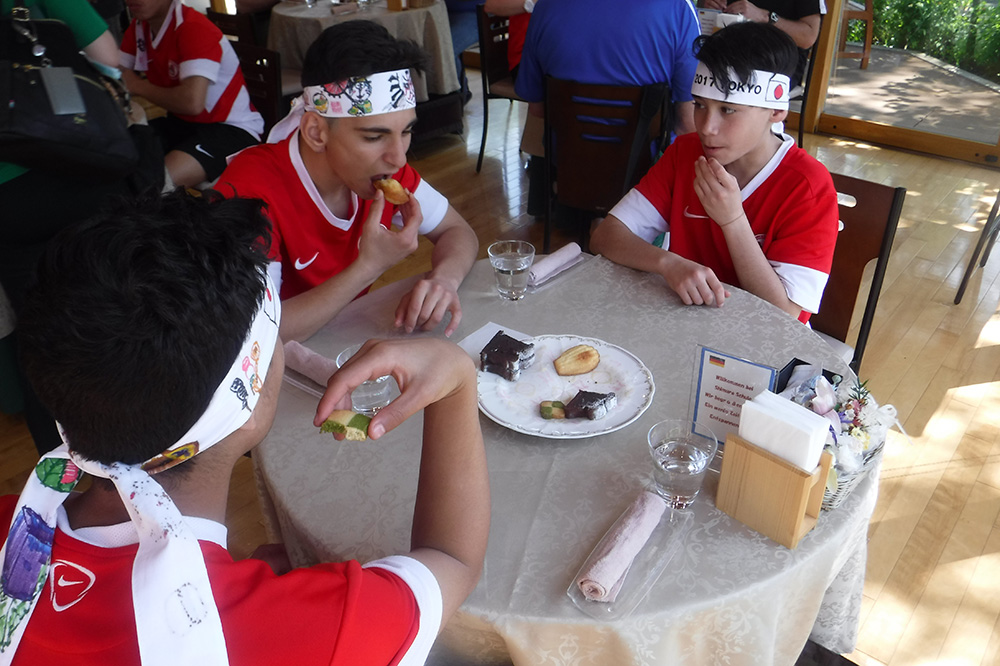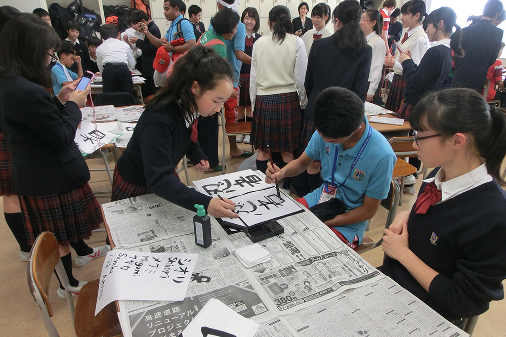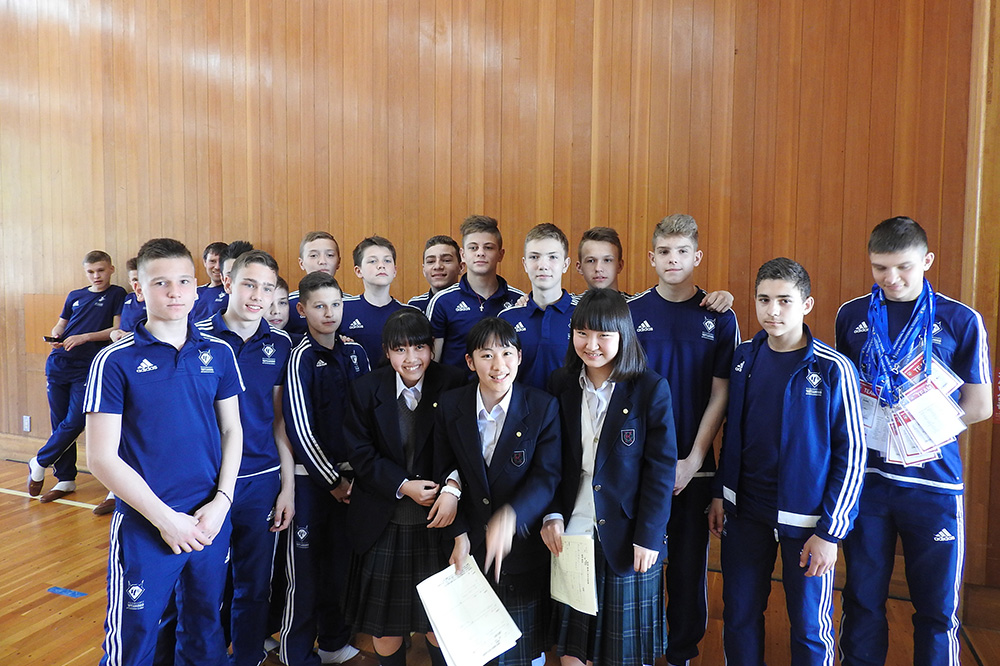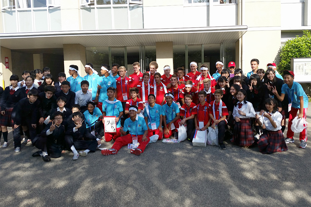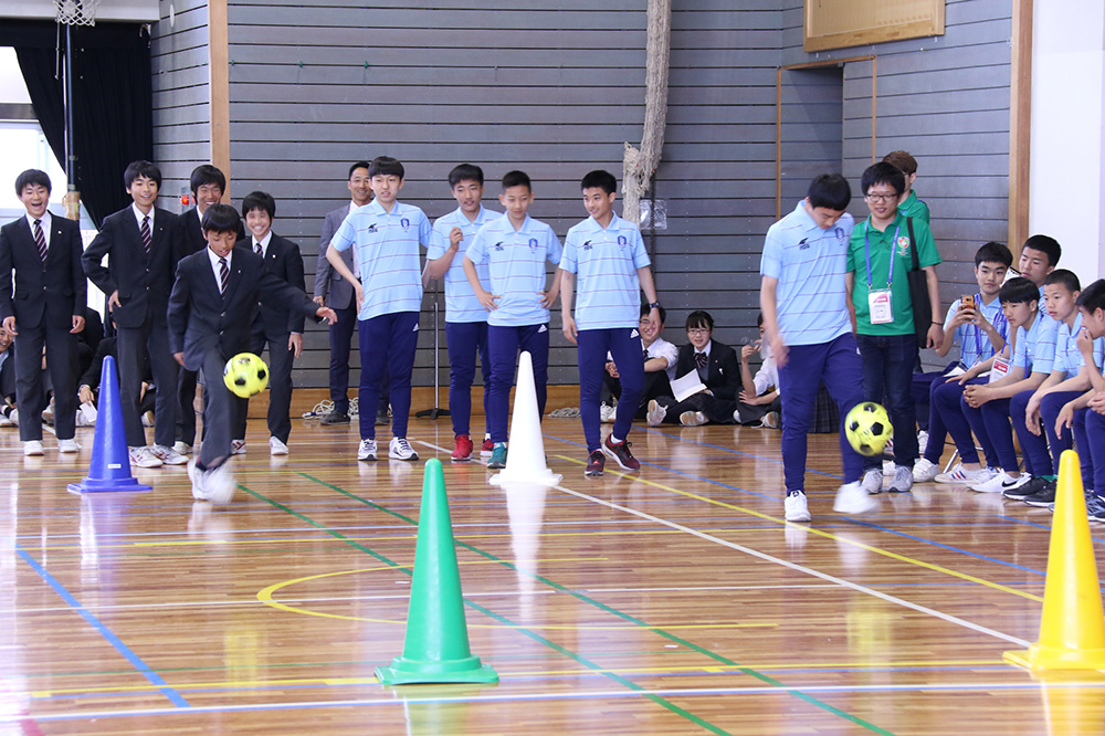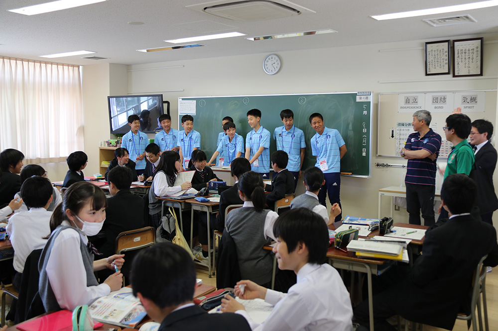 内容:海外チームが都内の中学校を訪問。歓迎セレモニー、記念品の贈呈、ゲーム、校内の見学など
