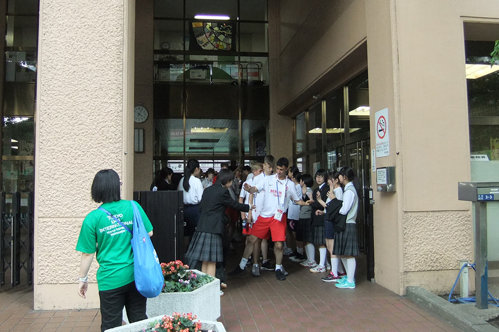 内容:海外チームが都内の学校を訪問。歓迎セレモニー、記念品の贈呈、ゲーム、校内の見学など様々な形で同世代の学生と交流